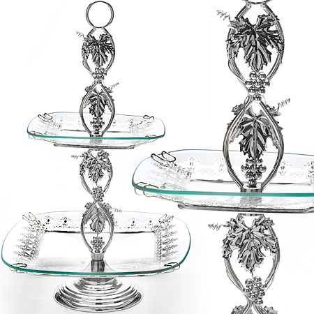 Конфетница фруктовница 2-х ярусная LORAINE стекло