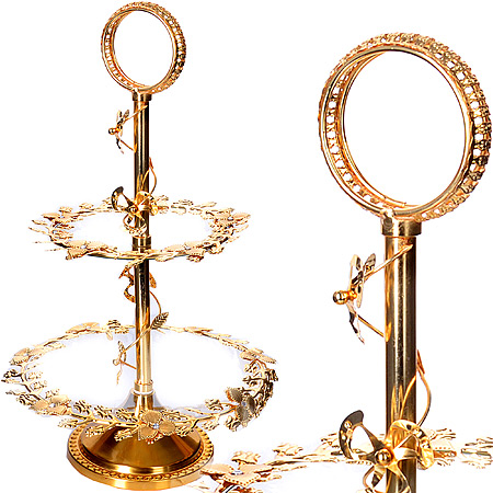 Элегантная конфетница LORAINE, выполненная из стекла, сочетает в себе изысканный дизайн с максимальной функциональностью. Конфетница состоит из 2-х ярусов разного размера и предназначена для красивой сервировки конфет, фруктов и десертов. Ярусы конфетницы оформлены оригинальным золотым орнаментом. Стойка-держатель конфетницы выполнена из стали с золотым покрытием. Конфетница украсит сервировку вашего стола и подчеркнет прекрасный вкус хозяина, а также станет отличным подарком