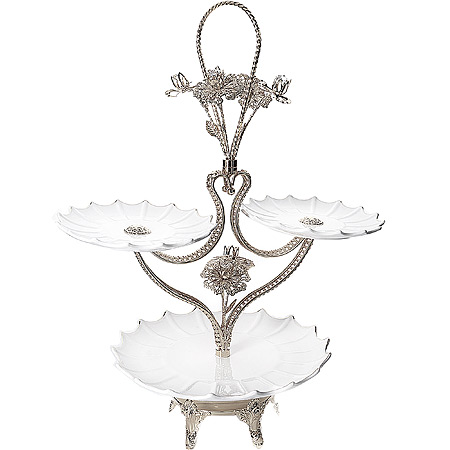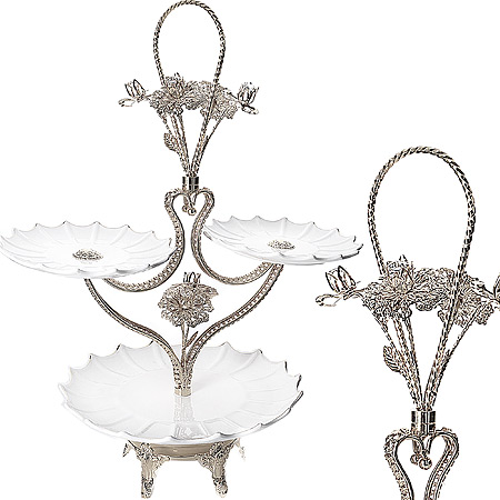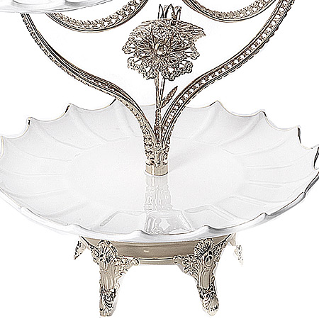Элегантная конфетница MAYER & BOCH выполнена из фарфора. Конфетница состоит из 2-х ярусов разного размера и предназначена для красивой сервировки конфет, фруктов и десертов. Фарфоровые ярусы конфетницы оформлены серебряной каймой. Стойка-держатель конфетницы выполнена из металла с серебряным покрытием. Конфетница украсит сервировку вашего стола и подчеркнет прекрасный вкус хозяина, а также станет отличным подарком.