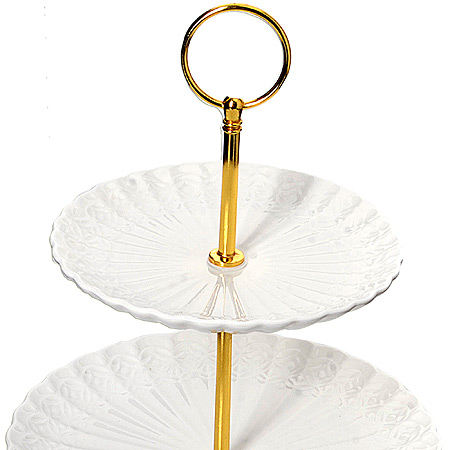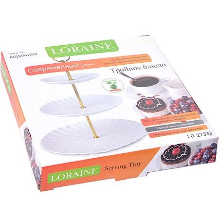 Элегантная конфетница LORAINE, выполненная из керамики, сочетает в себе изысканный дизайн с максимальной функциональностью. Конфетница состоит из 3-х ярусов разного размера и предназначена для красивой сервировки конфет, фруктов и десертов. Круглые ярусы конфетницы оформлены оригинальным орнаментом. Стойка-держатель конфетницы выполнена из стали.