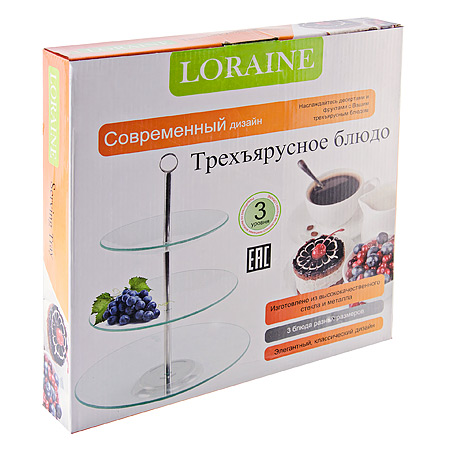 Элегантная конфетница LORAINE, выполненная из стекла, сочетает в себе изысканный дизайн с максимальной функциональностью. Конфетница состоит из 3-х ярусов разного размера и предназначена для красивой сервировки конфет, фруктов и десертов. Стойка-держатель конфетницы выполнена из нержавеющей стали. Конфетница украсит сервировку вашего стола и