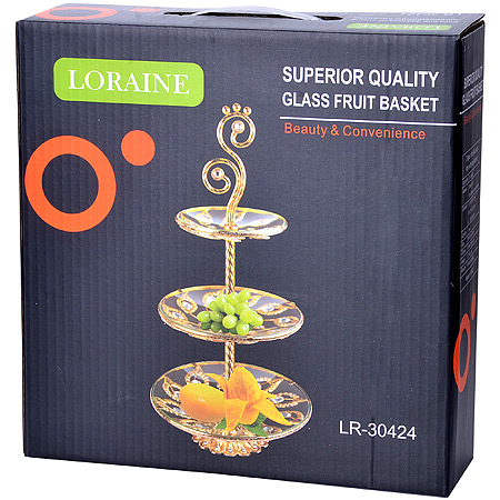 Конфетница фруктовница 3-х ярусная LORAINE Ванесса премиум стекло