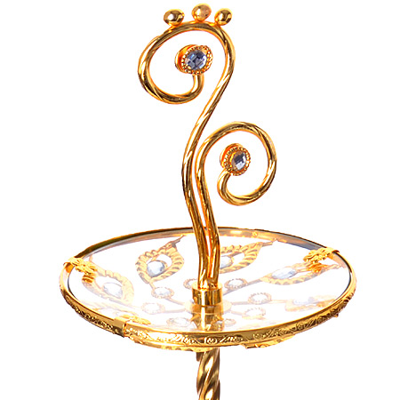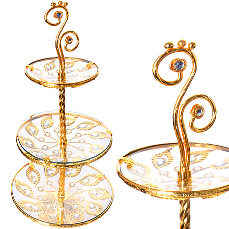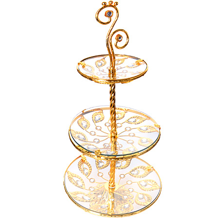 Элегантная конфетница LORAINE, выполненная из стекла, сочетает в себе изысканный дизайн с максимальной функциональностью. Конфетница состоит из 2-х ярусов разного размера и предназначена для красивой сервировки конфет, фруктов и десертов. Ярусы конфетницы оформлены оригинальным золотым орнаментом. Стойка-держатель конфетницы выполнена из стали с золотым покрытием. Конфетница украсит сервировку вашего стола и подчеркнет прекрасный вкус хозяина, а также станет отличным подарком