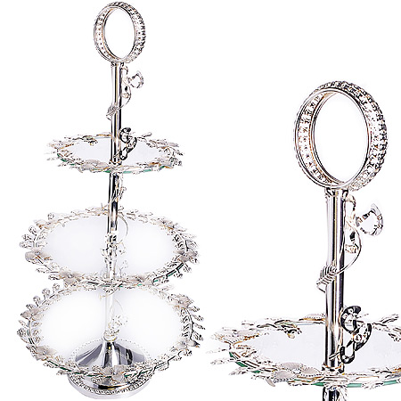 Элегантная конфетница MAYER & BOCH выполнена из высококачественного стекла. Конфетница состоит из 3-х ярусов разного размера и предназначена для красивой сервировки конфет, фруктов и десертов. Ярусы конфетницы оформлены оригинальными серебряными веточками из цветов. Стойка-держатель конфетницы выполнена из металла с серебряным покрытием.