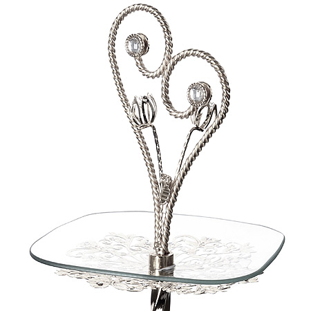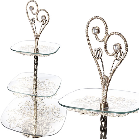 Элегантная конфетница MAYER & BOCH выполнена из высококачественного стекла. Конфетница состоит из 3-х ярусов разного размера и предназначена для красивой сервировки конфет, фруктов и десертов. Ярусы конфетницы оформлены оригинальными серебряными веточками из цветов. Стойка-держатель конфетницы выполнена из металла с серебряным покрытием.