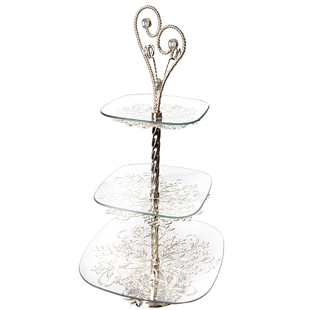 Элегантная конфетница MAYER & BOCH выполнена из высококачественного стекла. Конфетница состоит из 3-х ярусов разного размера и предназначена для красивой сервировки конфет, фруктов и десертов. Ярусы конфетницы оформлены оригинальными серебряными веточками из цветов. Стойка-держатель конфетницы выполнена из металла с серебряным покрытием. Конфетница украсит сервировку вашего стола и подчеркнет прекрасный вкус хозяина, а также станет отличным подарком.