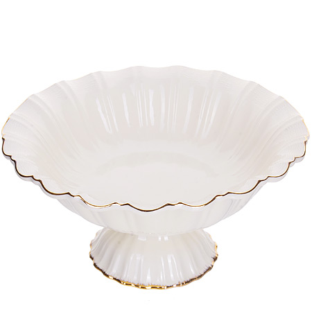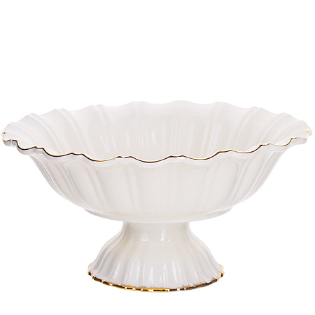 Фруктовница LORAINE выполнена из фарфора высокого качества. Широкая ваза на ножке предназначена для подачи различных сладостей или фруктов. Изящная классическая ваза станет прекрасным дополнением к набору посуды, отлично подойдет для сервировки праздничного стола, а также будет прекрасным подарком. Легко и быстро моется. Диаметр: 21,5 см. Высота: 11см.