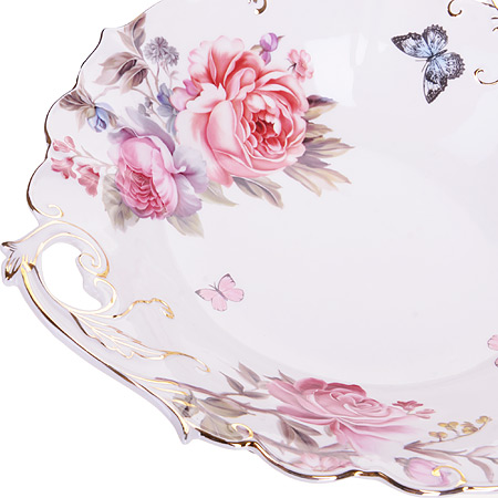 Конфетница фруктовница на ножке 14,5см LORAINE Пионы фарфор