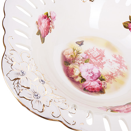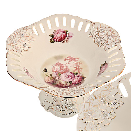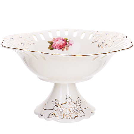 Конфетница фруктовница на ножке 14см LORAINE Цветы фарфор