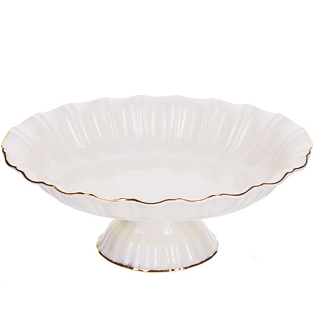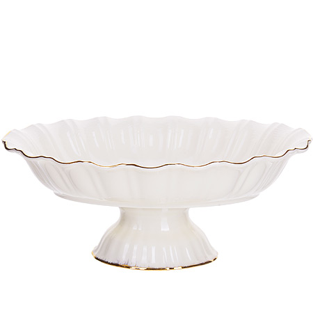 Фруктовница LORAINE выполнена из фарфора высокого качества. Широкая ваза на ножке предназначена для подачи различных сладостей или фруктов. Изящная классическая ваза станет прекрасным дополнением к набору посуды, отлично подойдет для сервировки праздничного стола, а также будет прекрасным подарком. Легко и быстро моется. Размер: 25 х 18 см. Высота: 9,5см.