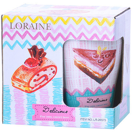 Кружка фарфоровая 340мл LORAINE Десерт LORAINE Чашки, кружки LR Кружка LORAINE, выполненная из костяного фарфора и украшенная ярким рисунком, станет красивым и полезным подарком для Ваших родных и близких. Дизайн изделия придется по вкусу и ценителям классики, и тем, кто предпочитает утонченность и изысканность. Кружка LORAINE настроит на позитивный лад и подарит хорошее настроение с самого утра. Изделие