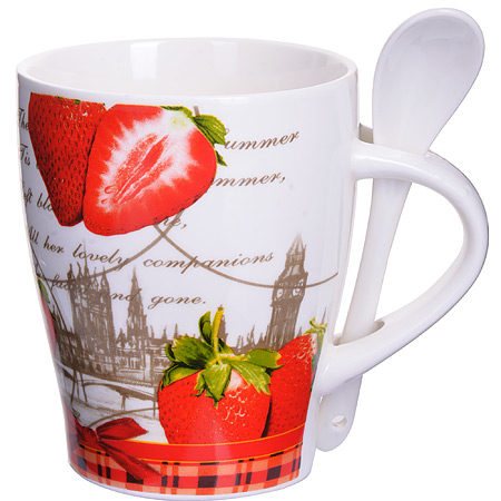 Кружка с ложкой LORAINE изготовлена из высококачественной керамики и оформлена стильным рисунком "КЛУБНИКА". Изящный дизайн придется по вкусу и ценителям классики, и тем, кто предпочитает утонченность и изысканность. Кружка настроит на позитивный лад и подарит хорошее настроение с самого утра. Кружка с ложкой идеальный и необходимый подарок для вашего дома и для ваших друзей в праздники.