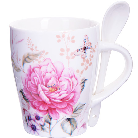 Кружка с ложкой LORAINE изготовлена из высококачественной керамики и оформлена стильным рисунком "РОЗА". Изящный дизайн придется по вкусу и ценителям классики, и тем, кто предпочитает утонченность и изысканность. Кружка настроит на позитивный лад и подарит хорошее настроение с самого утра. Кружка с ложкой идеальный и необходимый подарок для вашего дома и для ваших друзей в праздники.
