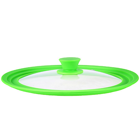 Крышка стеклянная универсальная 24-26-28см MAYER & BOCH с зеленым силиконовым ободом MAYER & BOCH Крышки M&B Крышка MAYER & BOCH изготовлена из жаропрочного стекла и силикона. Форма — круглая. Универсальная крышка подходит для кастрюль, сковород и сотейников трех разных диаметров 24 см, 26 см, 28 см, таким образом, вместо трех крышек можно использовать одну. Стекло и силикон являются экологически чистыми и термостойкими материалами. Цвет крышки —