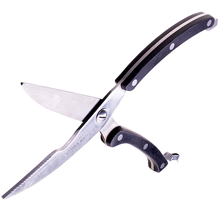 Назначение кухонных ножниц универсально, с их помощью можно открыть упаковку, нарезать бумагу для выпечки или пищевую пленку, нарезать зелень и т.д. Кроме того, помимо основной функции, они имеют встроенную колку для грецких орехов. Эргономичные ручки изделия сконструированы специально под удобный захват и использование без лишних усилий. Ножницы легко и просто мыть.