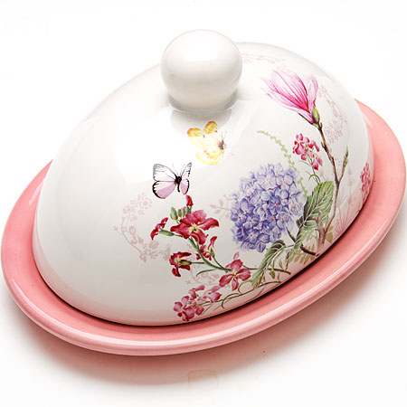 Масленка 10,5см LORAINE Бабочки доломит LORAINE Масленки LR Масленка LORAINE овальной формы, выполненная из качественной доломитовой керамики в розовых тонах и декорированная нежным цветочным рисунком, станет украшением интерьера вашей кухни. Масленка надежно закрывается керамической крышкой и прекрасно подойдет для хранения и сервировки масла, сыра, творога. Масленка рассчитана примерно на 200 г. масла.