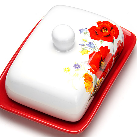 Масленка LORAINE Маки доломит LORAINE Масленки LR Масленка LORAINE, выполненная из качественной доломитовой керамики и декорированная ярким рисунком, станет украшением интерьера вашей кухни. Масленка надежно закрывается керамической крышкой и прекрасно подойдет для хранения и сервировки масла, сыра, творога. Масленка рассчитана примерно на 200 г. масла. Пригодна для использования в холодильнике,
