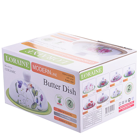 Масленка LORAINE Пионы доломит, овальная LORAINE Масленки LR Масленка LORAINE овальной формы, выполненная из качественной доломитовой керамики, станет украшением интерьера вашей кухни. Масленка надежно закрывается керамической крышкой и прекрасно подойдет для хранения и сервировки масла, сыра, творога. Масленка рассчитана примерно на 200 г. масла. Пригодна для использования в холодильнике, морозильнике,