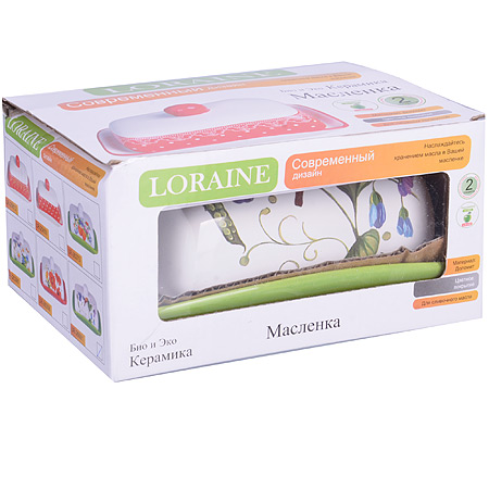 Масленка LORAINE квадратной формы, выполненная из качественной доломитовой керамики, станет украшением интерьера вашей кухни. Масленка надежно закрывается керамической крышкой и прекрасно подойдет для хранения и сервировки масла, сыра, творога. Масленка рассчитана примерно на 200 г. масла. Пригодна для использования в холодильнике, морозильнике, микроволновой печи. Подходит для мытья в посудомоечной машине.