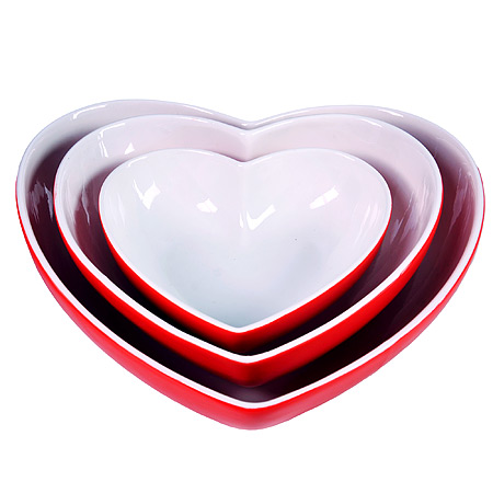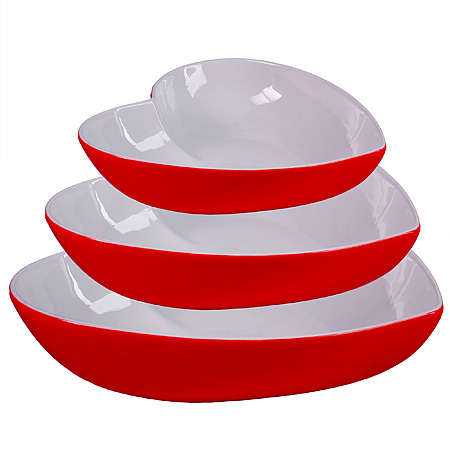 Миска салатник 300мл, 800мл, 1,3л набор 3шт LORAINE Сердце керамика, красные