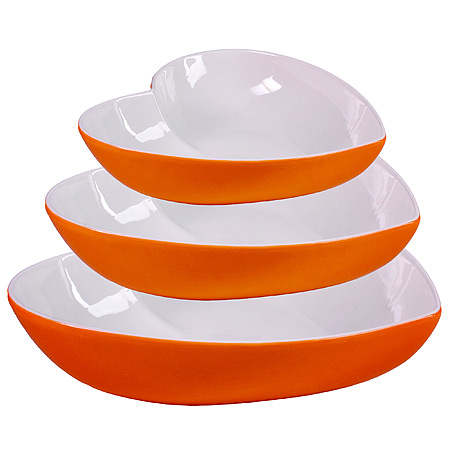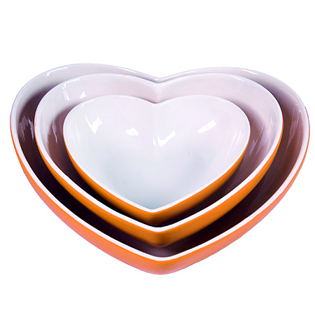 Миска салатник 300мл, 800мл, 1,3л набор 3шт LORAINE Сердце керамика, оранжевые
