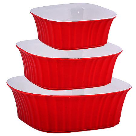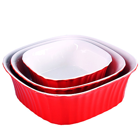 Миска салатник 400мл, 800мл, 1,2л набор 3шт LORAINE керамика, красные