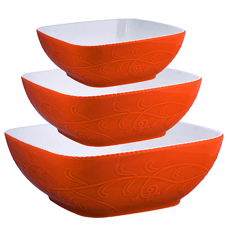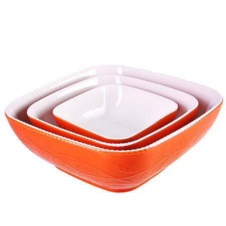 Миска салатник 500мл, 1,2л, 2,6л набор 3шт LORAINE керамика, оранжевые