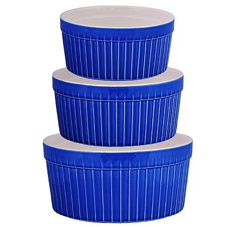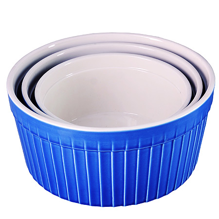 Миска салатник 800мл, 1,5л, 2,4л набор 3шт LORAINE керамика, круглые,синие