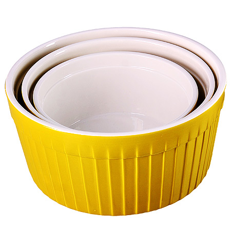 Миска салатник 800мл, 1,5л, 2,4л набор 3шт LORAINE керамика, желтые