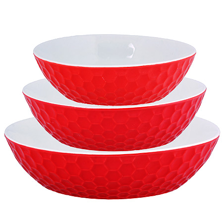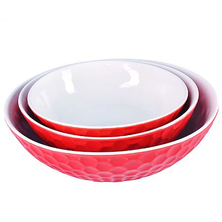 Миска салатник 900мл, 1,3л, 2л набор 3шт LORAINE керамика, красные