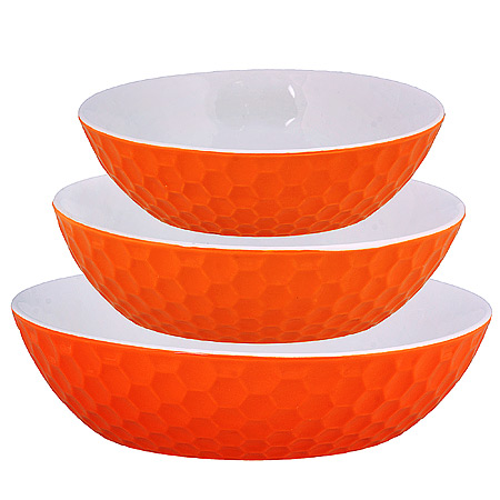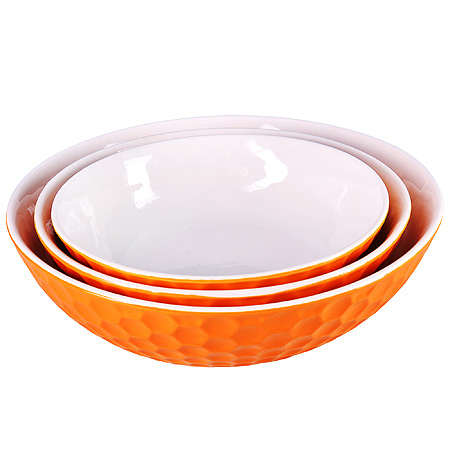 Миска салатник 900мл, 1,3л, 2л набор 3шт LORAINE керамика, оранжевые