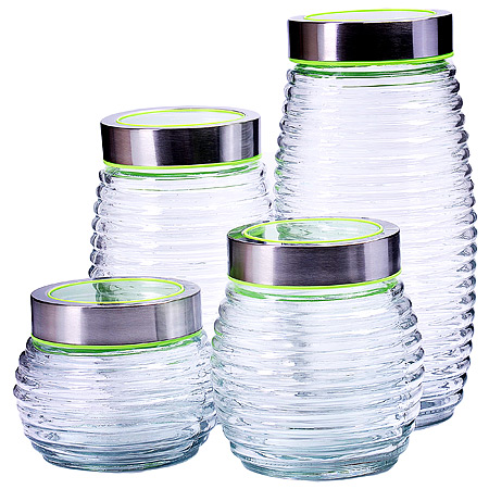 Набор банок для сыпучих продуктов 4шт 1,8+1,3+0,9+0,5л MAYER & BOCH стекло в полоску