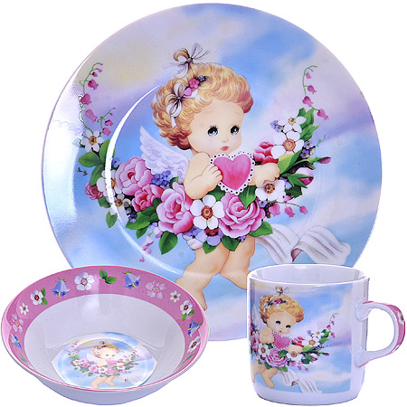 Набор детской посуды: миска 15см, тарелка 17,5, кружка 230мл LORAINE Ангел, фарфор Набор детской посуды: миска 15см, тарелка 17,5, кружка 230мл LORAINE Ангел, фарфор Набор детской посуды: миска 15см, тарелка 17,5, кружка 230мл LORAINE Ангел, фарфор