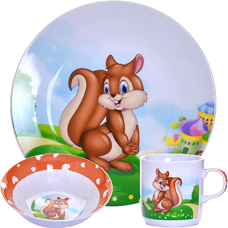 Набор детской посуды: миска 15см, тарелка 17,5, кружка 230мл LORAINE Белка, фарфор Набор детской посуды: миска 15см, тарелка 17,5, кружка 230мл LORAINE Белка, фарфор Набор детской посуды: миска 15см, тарелка 17,5, кружка 230мл LORAINE Белка, фарфор
