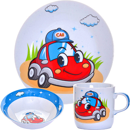 Набор детской посуды: миска 15см, тарелка 17,5, кружка 230мл LORAINE Машина, фарфор Набор детской посуды: миска 15см, тарелка 17,5, кружка 230мл LORAINE Машина, фарфор Набор детской посуды: миска 15см, тарелка 17,5, кружка 230мл LORAINE Машина, фарфор