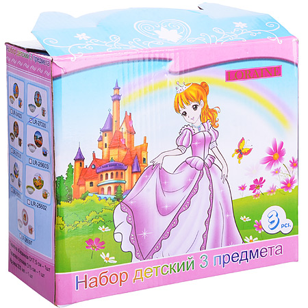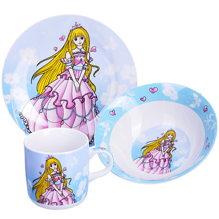 Набор детской посуды: миска 15см, тарелка 17,5, кружка 230мл LORAINE Принцесса, фарфор Набор детской посуды: миска 15см, тарелка 17,5, кружка 230мл LORAINE Принцесса, фарфор