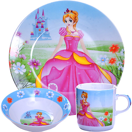 Предметы набора выполнены из высококачественного фарфора и декорированы красочным рисунком. Изделия легкие и функциональные. Такой набор обязательно понравится вашему ребенку, потому что теперь у него будет своя собственная посуда с ярким и оригинальным детским рисунком. Набор посуды для детей включает в себя три предмета: суповую тарелку, обеденную тарелку и кружку. Набор упакован в красочную, подарочную упаковку. Подходит для мытья в посудомоечной машине. Для детей от 3-х лет.