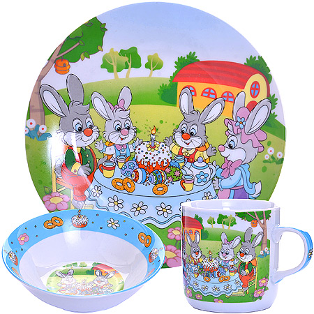 Набор детской посуды: миска 15см, тарелка 17,5, кружка 230мл LORAINE Зайчики, фарфор Набор детской посуды: миска 15см, тарелка 17,5, кружка 230мл LORAINE Зайчики, фарфор Набор детской посуды: миска 15см, тарелка 17,5, кружка 230мл LORAINE Зайчики, фарфор