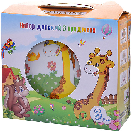 Предметы набора выполнены из высококачественной керамики и декорированы красочным рисунком. Изделия легкие и функциональные. Такой набор обязательно понравится вашему ребенку, потому что теперь у него будет своя собственная посуда с ярким и оригинальным детским рисунком. Набор посуды для детей включает в себя три предмета: суповую тарелку,