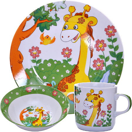 Предметы набора выполнены из высококачественной керамики и декорированы красочным рисунком. Изделия легкие и функциональные. Такой набор обязательно понравится вашему ребенку, потому что теперь у него будет своя собственная посуда с ярким и оригинальным детским рисунком. Набор посуды для детей включает в себя три предмета: суповую тарелку, обеденную тарелку и кружку. Набор упакован в красочную, подарочную упаковку. Подходит для мытья в посудомоечной машине. Для детей от 3-х лет.