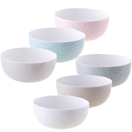 Набор из 6-ти салатниц LORAINE выполнен из качественного фарфора. В фарфоровой посуде блюда сохраняют свои вкусовые качества, кроме того она обладает термической и химической прочностью. Благодаря оригинальному дизайну, такие супницы отлично подойдут как для ежедневного использования, так и для праздничной сервировки стола. Подходит для мытья в посудомоечной машине. Объем: 550 мл. Размер: D 14х6,5 см.