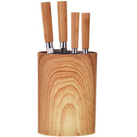 Набор ножей MAYER & BOCH состоит из 4-х ножей разного размера (поварского ножа, разделочного ножа и универсального ножа,нож для очистки), компактно складывающихся в оригинальную подставку-тубус из полипропилена. Лезвия выполнены из высококачественной нержавеющей стали, имеют износостойкую режущую кромку, благодаря чему ножи дольше остаются острыми, а эргономичные рукоятки ножей, выполненные из бамбука, обеспечивают безопасную работу и комфортное положение в руке. Это прекрасные ножи для ежедневной резки фруктов, овощей и мяса. Изделия имеют гладкую, легко очищаемую поверхность. Оригинальный дизайн набора и качество исполнения не оставят Вас равнодушными. Набор MAYER & BOCH станет великолепным подарком и отлично украсит интерьер Вашей кухни!