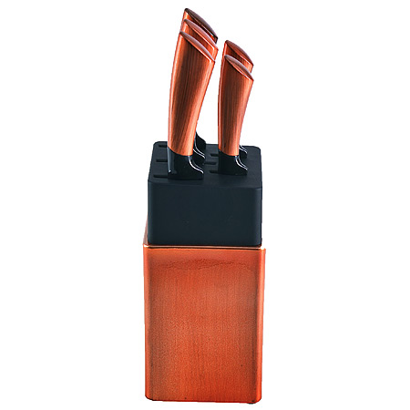 Набор ножей 4шт MAYER & BOCH из нержавеющей стали, пластиковая подставка, медный MAYER & BOCH M&B Knives Набор ножей MAYER & BOCH состоит из 5-ти ножей разного размера, компактно складывающихся в оригинальную подставку-тубус из полипропилена. Лезвия выполнены из высококачественной нержавеющей стали, имеют износостойкую режущую кромку, благодаря чему ножи дольше остаются острыми, а эргономичные рукоятки ножей, выполненные из ПП, обеспечивают