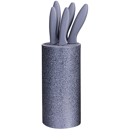Набор ножей 4шт MAYER & BOCH из нержавеющей стали, пластиковая подставка, серый MAYER & BOCH M&B Knives Набор ножей MAYER & BOCH состоит из 5-ти ножей разного размера (поварского ножа, разделочного ножа, для хлеба, универсального ножа и для чистки овощей), компактно складывающихся в оригинальную цветную подставку-тубус из полипропилена. Лезвия выполнены из высококачественной нержавеющей стали, имеют износостойкую режущую кромку, благодаря чему ножи