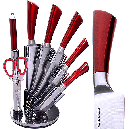 Набор: ножи 5шт, ножницы, мусат, подставка, чемодан MAYER & BOCH Red из нержавеющей стали Набор: ножи 5шт, ножницы, мусат, подставка, чемодан MAYER & BOCH Red из нержавеющей стали Набор: ножи 5шт, ножницы, мусат, подставка, чемодан MAYER & BOCH Red из нержавеющей стали Набор: ножи 5шт, ножницы, мусат, подставка, чемодан MAYER & BOCH Red из нержавеющей стали
