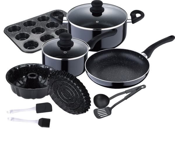 Набор посуды от BERGNER станет отличным подарком всем хозяйкам. Качественная посуда из 12 предметов в одном стиле закроет потребность необходимой наплитной посуды, форм для выпечки и аксессуаров для приготовления.