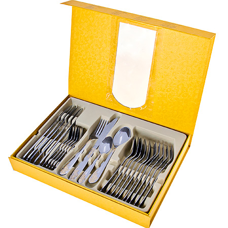 Столовые приборы изготавливаются из высококачественной нержавеющей стали, все изделия проходят тщательный технологический контроль. Приборы из нержавеющей стали такого состава отличаются высокими антикоррозионными свойствами, значительной устойчивостью к воздействию кислот и щелочей. Такая сталь не изменяет вкус и цвет пищи, не выделяет вредных веществ. Набор подходит как для ежедневного использования, так и для торжественных случаев. Подходит для мытья в посудомоечной машине.