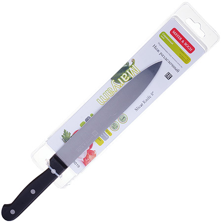 Нож разделочный 20см MAYER & BOCH Maryam из нержавеющей стали MAYER & BOCH M&B Knives Нож изготовлен из высококачественной легированной стали, обеспечивающей высокие режущие свойства кромки клинка. Нож имеет острое лезвие с ровной поверхностью и выверенным углом заточки, а также имеет специальную закалку металла для повышения прочности. Поверхность клинка легко моется, не впитывает и не «передает» запахи пищи при нарезке продуктов.