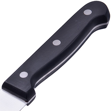 Нож изготовлен из высококачественной легированной стали, обеспечивающей высокие режущие свойства кромки клинка. Нож имеет острое лезвие с ровной поверхностью и выверенным углом заточки, а также имеет специальную закалку металла для повышения прочности. Поверхность клинка легко моется, не впитывает и не «передает» запахи пищи при нарезке продуктов. Нож идеально подойдет для резки как мяса и рыбы, так и фруктов и овощей. Тщательно разработанный дизайн рукоятки и ее качество позволяют ножу удобно располагаться в руке. Нож изготовлен из экологически чистых материалов, легок и прост в эксплуатации и уходе.