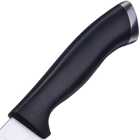 Нож изготовлен из высококачественной легированной стали, обеспечивающей высокие режущие свойства кромки клинка. Нож имеет острое лезвие с ровной поверхностью и выверенным углом заточки, а также имеет специальную закалку металла для повышения прочности. Поверхность клинка легко моется, не впитывает и не «передает» запахи пищи при нарезке продуктов. Нож идеально подойдет для резки как мяса и рыбы, так и фруктов и овощей. Тщательно разработанный дизайн рукоятки и ее качество позволяют ножу удобно располагаться в руке. Нож изготовлен из экологически чистых материалов, легок и прост в эксплуатации и уходе.